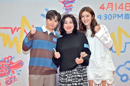 【明報專訊】黃德斌、余香凝、陳瑞輝(Frankie)、陳秀珠、沈貞巧(Gao)和邱傲然等昨日到商場宣傳下周一(14日)首播的ViuTV劇《麻甩媽咪》,眾演員介紹角色關係,現場播出Frankie與余香凝合唱的主題曲MV。陳秀珠自爆劇中演「恐怖奶奶」,與「新抱」余香凝經常鬥氣,令「兒子」陳瑞輝做磨心變夾心人。余香凝解釋:「我原本是乖新抱,因被黃德斌上身才不怕奶奶變成鬥氣。」