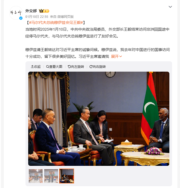 中國外交部長王毅結束訪問非洲回國途中,當地時間1月10日經停馬爾代夫,會見了馬爾代夫總統穆伊茲。