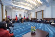 第60屆美國總統就職典禮將於1月20日舉行,台灣賴清德政府循例籌組跨黨派代表團出席,賴清德指派立法院長韓國瑜擔任團長,1月16日上午在台北總統府接見跨黨派慶賀團成員。