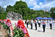 紀念沙基慘案100周年活動6月23日在廣州舉行,現場全體人員向革命先烈鞠躬默哀,向沙基慘案烈士致以崇高敬意。隨後,全體人員依次獻花,寄托哀思。