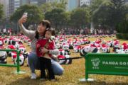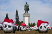 大型熊貓主題展覽《PANDA GO!香港遊》最後一站今日(25日)起一連兩日於西營盤中山紀念公園舉行,部分雕塑更以特別造型現身,戴上聖誕帽應節。有市民穿上聖誕裝在場打卡。