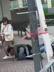 據讀者提供片段,一名戴口罩老翁在行人過路處路邊,雙手箍住一名男子右手,雙方互有拉扯,男子另一手捉住燈柱,老翁其後將男子拉出,失平衡同跌落地,男子其後跪在老翁身上將他制服,其間老翁出手反抗。
