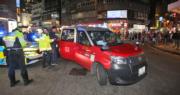 【22:46更新】今晚(3日)近7時,一輛的士沿尖沙嘴堪富利士道右轉加拿芬道時,撞倒一名過路女子,並將她捲入車底,多人報警求助。接報到場消防先固定涉事的士,再用工具將車輛升高,小心翼翼把傷者救出,她獲救時仍有知覺,救護員即場為其作初步治理,再由救護車送院。64歲姓黃女子,左腳受傷,初步相信沒有被的士輾過。。警方事後封鎖部分行車線蒐證,涉事60歲姓梁男司機在現場協助警員了解情况,他涉嫌危險駕駛被捕,由警員帶署扣查。意外原因仍有待調查。