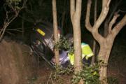 昨晚(9日)11時許,一輛私家車沿大帽山道落斜,懷疑失控撞向右邊山坡石壁,繼而再向左衝落山坡叢林,全車翻轉,四輪朝天。男司機及女乘客自行爬出車外,並報警求助。