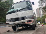 今晨(21日)6時許,一輛校巴沿馬鞍山錦英路上斜往西沙路方向行駛,在錦英苑對開左彎位失控撞向路邊一段倒U型矮欄,半邊車身剷上行人路,最後車底遭鐵欄卡住才停下。60多歲男司機昏迷車內,救援人員到場將他救出送往威爾斯親王醫院,惜搶救後不治。警方列作致命交通意外。