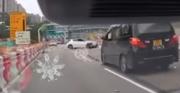今午1時許,一輛私家車沿粉嶺公路往元朗方向行駛,至和合石附近失控撞及路旁「水馬」致水花四濺,私家車隨後凌空翻滾數周後落地,幸未翻轉,私家車車頭損毀,更一度冒煙,車上一對男女受傷,其中女乘客事後送院治理,現場消息指,警員到場調查期間,男司機不知所蹤,正追查其下落。