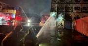 天水圍廈村路一貨場發生大火。警方今晚(22日)7時許接獲多宗報案,指天水圍廈村路近新圍污水處理廠一貨場發生大火。消防接報到場,動用3條喉和3隊煙霧隊撲救。綜合消防處和網上照片所示,消防人員正對着一排冷藏貨櫃射水,現場冒出大量濃煙,火勢頗猛烈。火警中暫時沒有接獲傷亡報告。消防處提醒,如市民受到隨風飄散的煙霧和異味影響,請關閉門窗及保持鎮定。