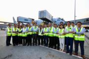 李家超到訪機場停機坪,向多位地勤人員了解貨運流程和日常工作,亦在員工餐廳和機場不同工種勞工交流。