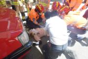 有份救人的朱先生說,當時沒有目睹撞擊一刻,聽到有人「啊」一聲大叫,便見到女事主身體近3分之1部分被車壓住,包括膊頭。隨即附近十幾名男士上前幫忙抬起的士,有人將女事主拉出來,亦有人用傘為女事主遮陽。朱先生說,女事主當時清醒,不知她情況是否嚴重。很快消防車及救護車相繼到場,幫手抬車的途人便散去。但其中一名協助抬車男子,因放低車身時,左腳的皮鞋被車輪壓住,需待警方將車拖走,才能取回皮鞋。