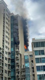 將軍澳唐賢街23號帝景灣2座,今日(21日)早上7時46分,警方接獲多人報案,指上址有單位發生火警,火光熊熊並冒出濃煙,濃煙遮蓋半個天空,消防及救護接報趕到,出動一喉一煙帽隊及架起雲梯救火,至8時15分將火救熄,其間疏散約50名居民,起火單位的一對姊妹及一名外傭,其中姊姊額頭燒傷,需送院治理,另兩人則無恙,消防正調查起火原因。