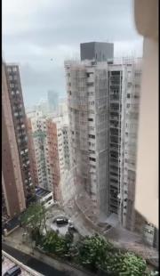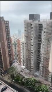 早上9時29分,北角寶馬山道4號摩天大廈一幅長40米乘10米的建築棚架,疑受到強颱風吹襲導致棚架如撕洋蔥般整幅倒塌,橫亘停車場與平台間,警方及消防接報到場,經搜索後證實事故中無人被困及受傷,僅4部私家車損毀。