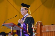 盧煜明稱,現時全球正邁向由AI引領的未來,面對地緣政治變化、經濟格局調整及氣候變遷,中大為公益為先的大學,履行社會責任是一種集體承諾,呼籲畢業生應更加積極服務社會。他又指中大教育學生的成功之處,並非在於「永不跌倒」,而是每次受挫之後都可以重新出發,勉勵學生從錯誤中學習。盧煜明又指當下時代瞬息萬變,應放下既有概念,以全新角度審視世界。