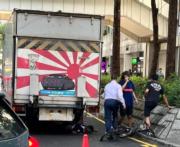 【18:36更新】大埔發生交通意外。今午(16日)1時43分,警方接報指大埔超級城對開安邦路,一輛掛有「P牌」的貨車撞倒一名男子,男子被捲入車底重創昏迷,消防及救護到場,將事主救出送往大埔那打素醫院,惟搶救後傷重不治,現場遺下一隻波鞋,被撞單車車尾轆變形損毁。