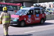 上午10時許,一輛的士駛經觀塘業街與偉發道交界,與一輛MINI COOPER私家車相撞,再撞向另一的士後衝上安全島,掃毁鐵欄並翻側,的士司機受傷被困車內。MINI COOPER車頭損毁嚴重,一度冒煙,另一輛的士則左邊車身凹陷。救援人員接報趕至現場,被困的士司機獲救,清醒由救護車送往伊利沙伯醫院。另一的士司機同受輕傷送院,涉事MINI COOPER女司機並無受傷,在場協助警方調查。