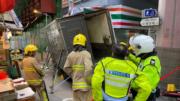 一輛運新鮮運豬殼貨車今晨(12月2日)8時許在中環結志街懷疑失控,剷上行人路撞向一間便利店,便利店玻璃櫥窗粉碎,招牌損毁,貨車一度冒煙,警方及救援人員趕至現場,便利店內一名顧客受輕傷送院,司機在場協助調查,貨車事發後於在行人路與馬路之間傾側,消防需以工具支撐車身,
