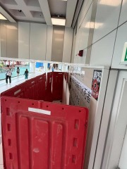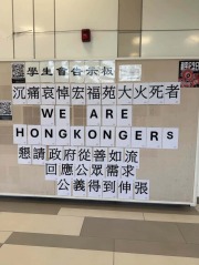 浸會大學校園內設「學生會告示板」,昨日(2日)起告示板上以白紙黑字逐字貼上「沉痛哀悼宏福苑大火死者」、「WE ARE HONGKONGERS」、「懇請政府從善如流回應公衆需求」、「公義得到伸張」的字句。惟告示板今日(3日)遭紅色水馬圍封,水馬內亦多加一層白色圍板。本報已就此事向浸大查詢,暫未獲回覆。