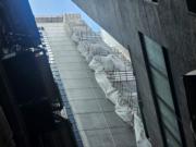 記者今日返回現場了解事件,見到涉事後巷地下有血迹及一頂染血漁夫帽,大廈外牆有一個竹棚。附近食肆職員李先生說,他常常經過後巷,有時見到地下有建築工程工具,都擔心會有工具不小心跌下來,加上他之前曾親眼目擊石屎跌落,故「好驚行呢度」,唯有自己提高警覺。李稱不認識女事主,希望傷者能早日康復。