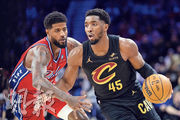 【明報專訊】費城76人昨於NBA常規賽有球星保羅佐治(左)在內6人得分上雙,主場以132:129力克有米曹(右)攻入全場最高37分的克里夫蘭騎士,走出七連敗頹勢,賽後16勝27負暫列東岸第11位;而騎士吞下兩連敗後仍以36勝8負續居東岸榜首。同日孟菲斯灰熊在主場以139:136力克新奧爾良塘鵝,五連勝後以30勝15負排西岸季席。