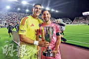 【明報專訊】國際邁阿密昨在美職季後賽東岸決賽於主場以5:1大勝紐約城,隊史首闖總決賽,將在下周日凌晨決戰有德國前國腳湯馬士梅拿壓陣的溫哥華白帽。是役送上一次助攻的阿根廷球王美斯(右)更超越匈牙利籍已故名宿普斯卡斯,以405次成為足壇史上助攻次數最多球員;而在2023年登陸美職以來,美斯已助邁阿密拿下3座冠軍,個人亦以47項錦標成為足壇最多。